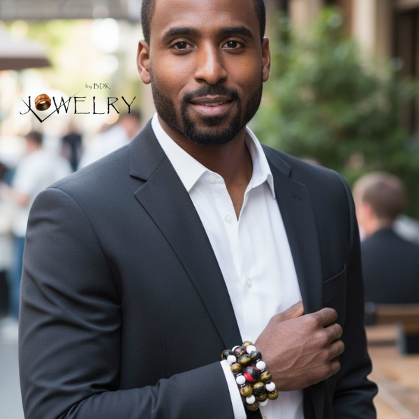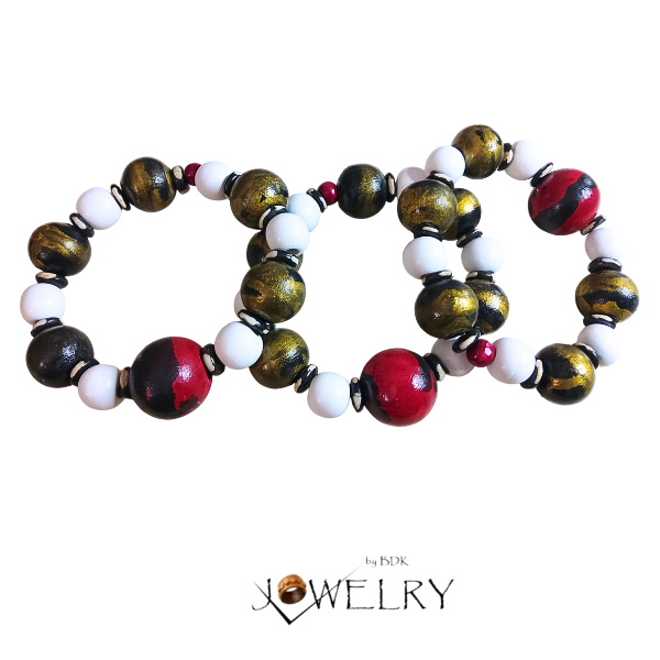 1-PC Men’s Red, Black, White & Gold Beaded Bracelet