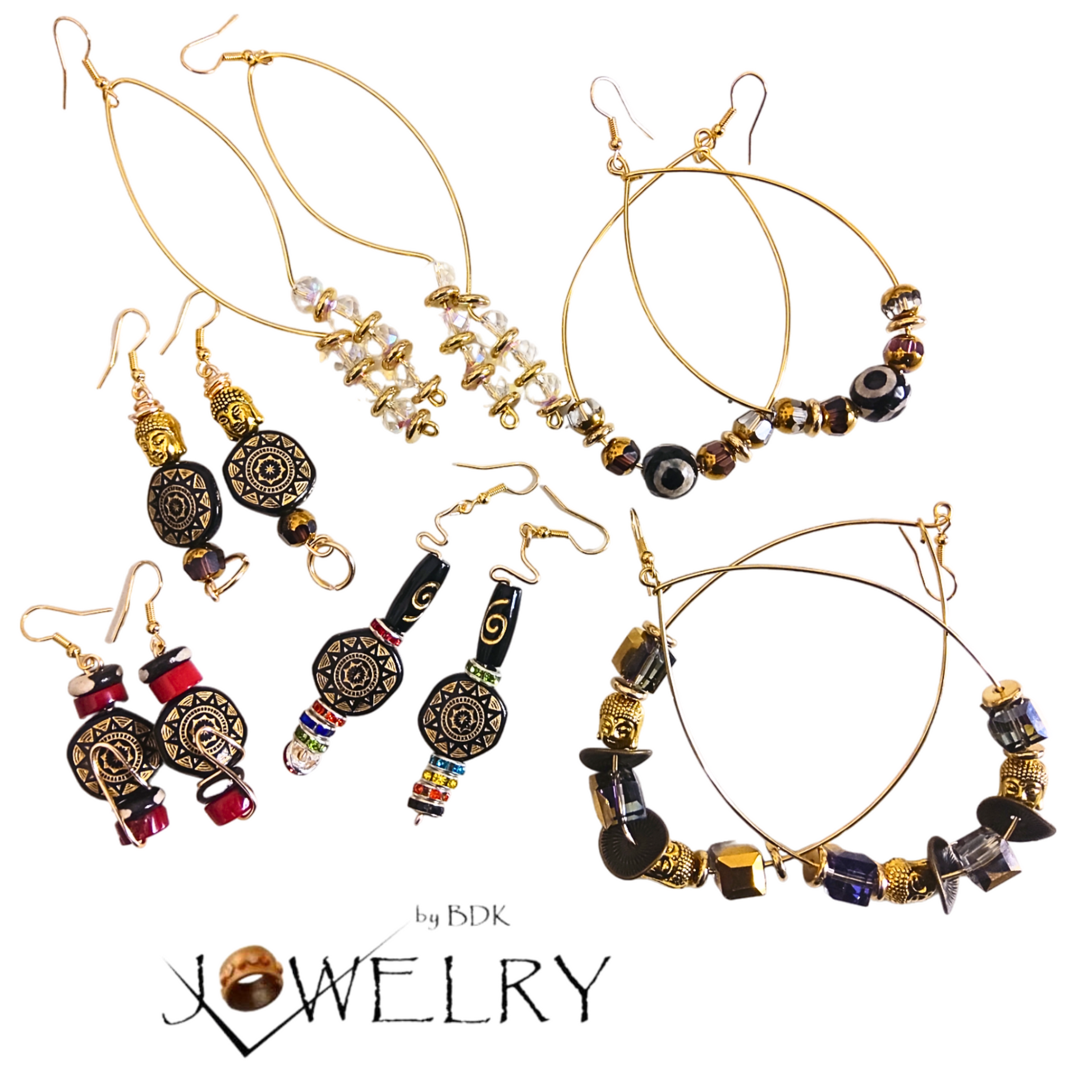 Discover the beauty of our 6 pairs of handmade Bohemian earrings. Made with stunning craftsmanship and intricate designs, each pair showcases a unique charm that will add a touch of elegance to any outfit. Handmade with care, these earrings are the perfect accessory for any occasion.