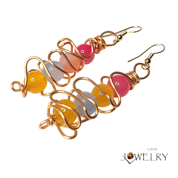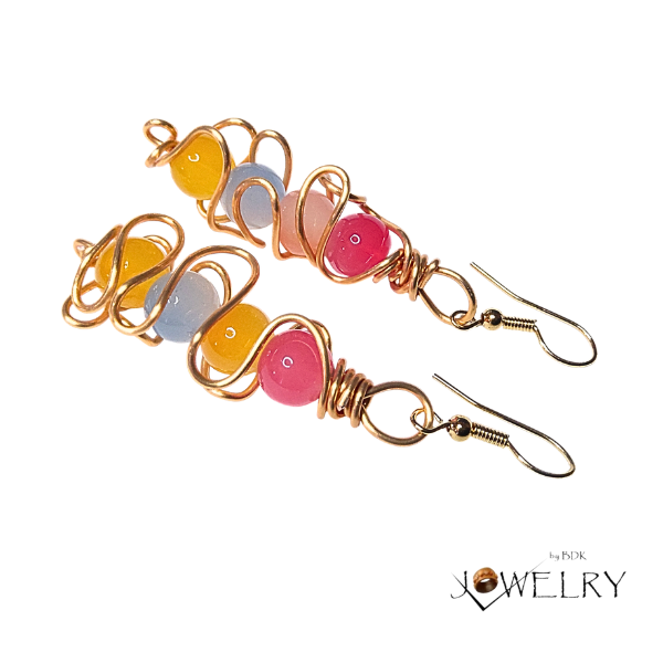 Add a touch of elegance and pastel colors to your look with these Handmade Wire Wrapped Pastel Boho Dangle Earrings. Designed with soft 8mm colorful glass beads and delicate 18-gauge wire wrapping, these earrings are perfect for everyday wear, or as a thoughtful gift for someone special.